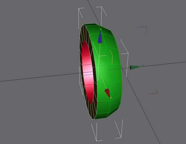 2)máme obr2, vybereme všechny polygony vnitřního válce a zmáčkneme extrude, vytáhneme na nulovou vejšku- aby se to nehejblo.